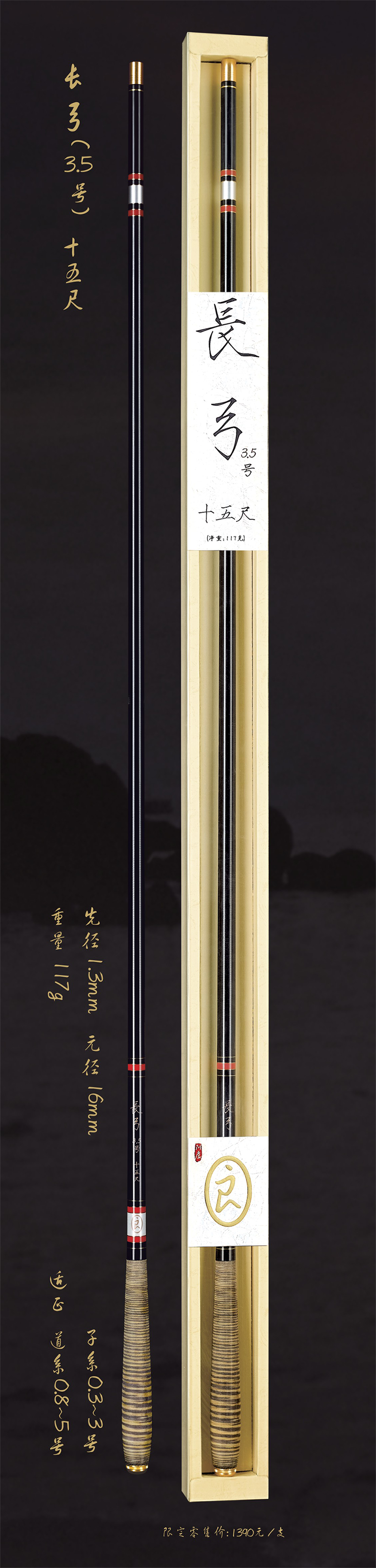 深圳市一良致釣有限公司經(jīng)過(guò)專(zhuān)業(yè)研發(fā),反復(fù)調(diào)試現(xiàn)推出長(zhǎng)弓3.5號(hào)十五尺,長(zhǎng)弓3.5號(hào)十八尺,長(zhǎng)弓4號(hào)十六尺三款新品釣竿。